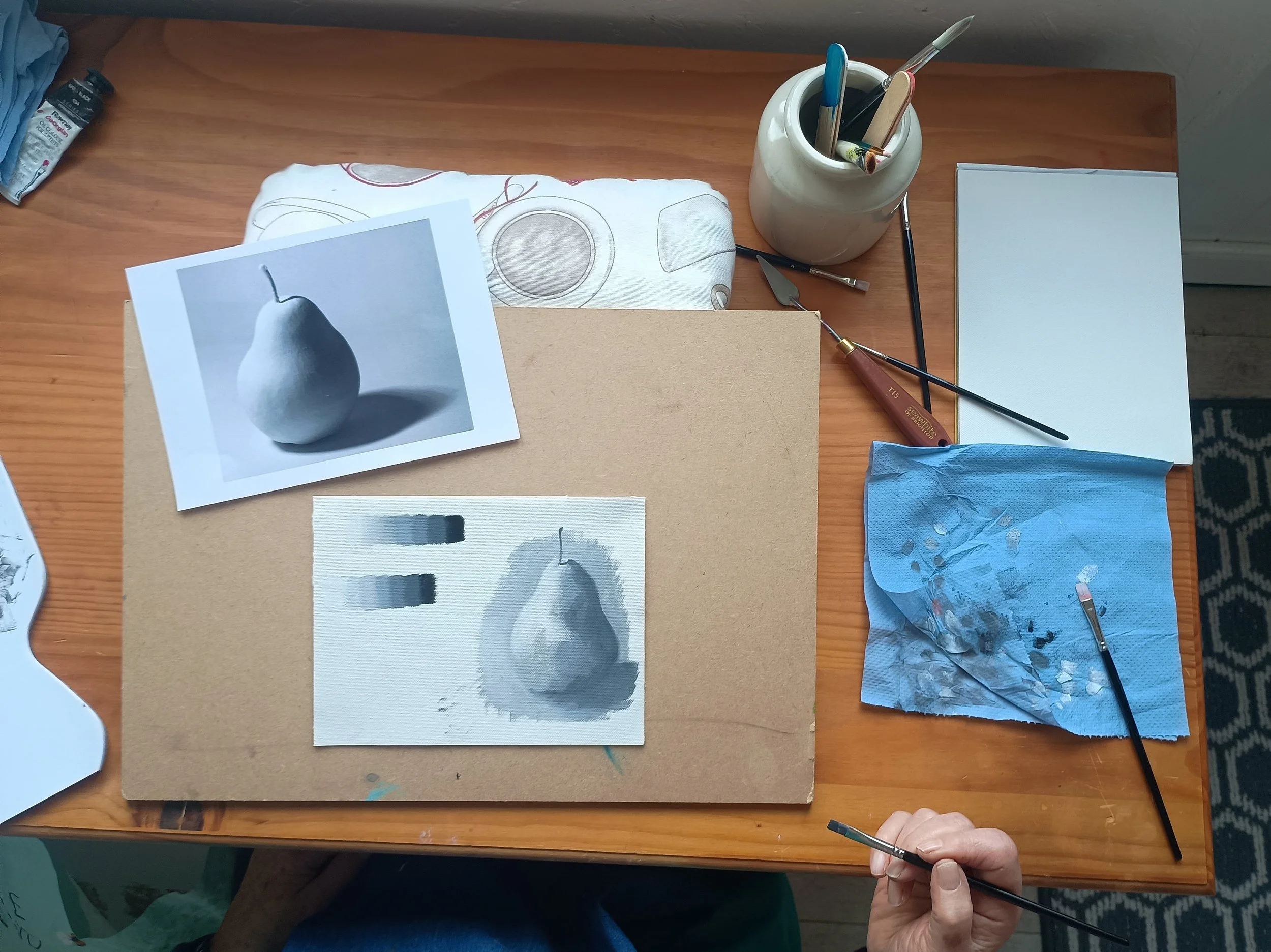 “Last Christmas I was gifted a voucher for a couple of one-to-one sessions with Linda, lucky me! We used the time to help me get to grips with colour theory and mixing, and I also got the chance to try using oil paints for the first time, all with the benefit of Linda's usual patient and cheerful encouragement. I enjoyed the sessions so much, and felt that I made some real progress, so I'm now off to buy some oil paints and can't wait to start experimenting with them.”